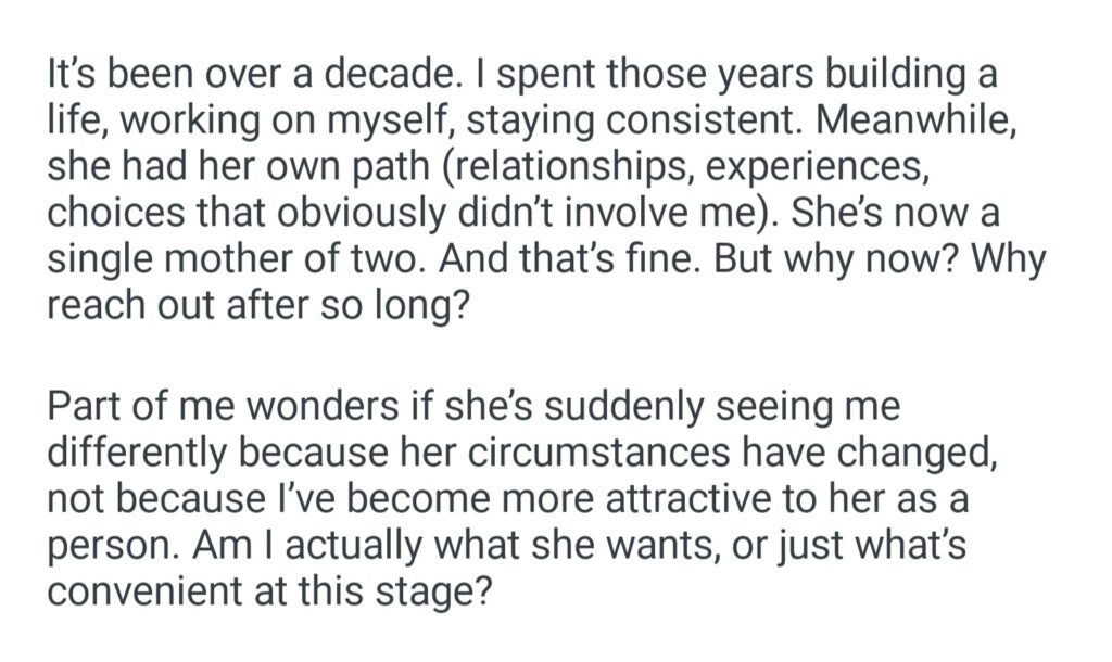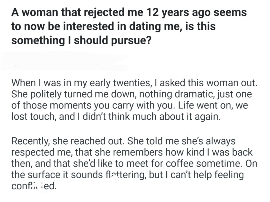 A Woman That Rejected Me 12 Years Ago Seems To Now Be Intersted In Dating