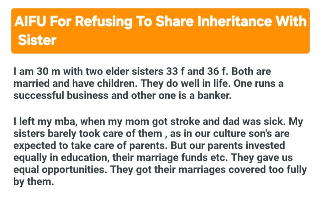 AIFU For Refusing To Share Inheritance With Sister