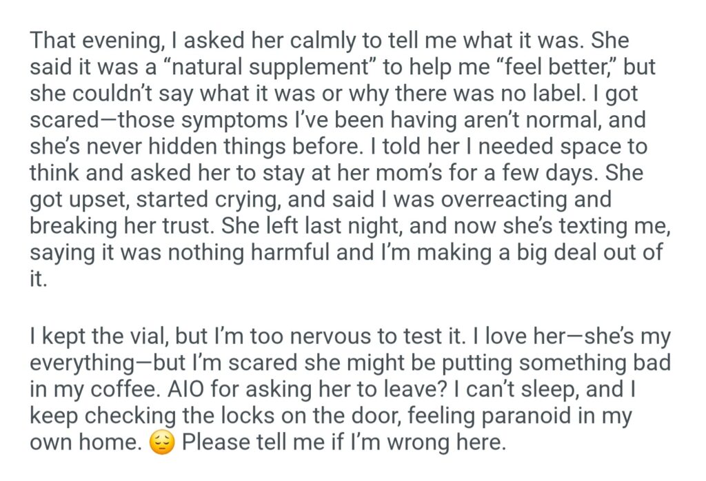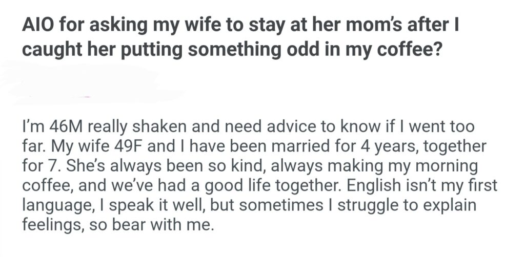 AIO For Asking My Wife To Stay At Her Mom’s After I Caught Her Putting Something Odd In My Coffee