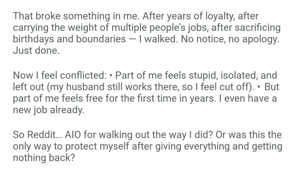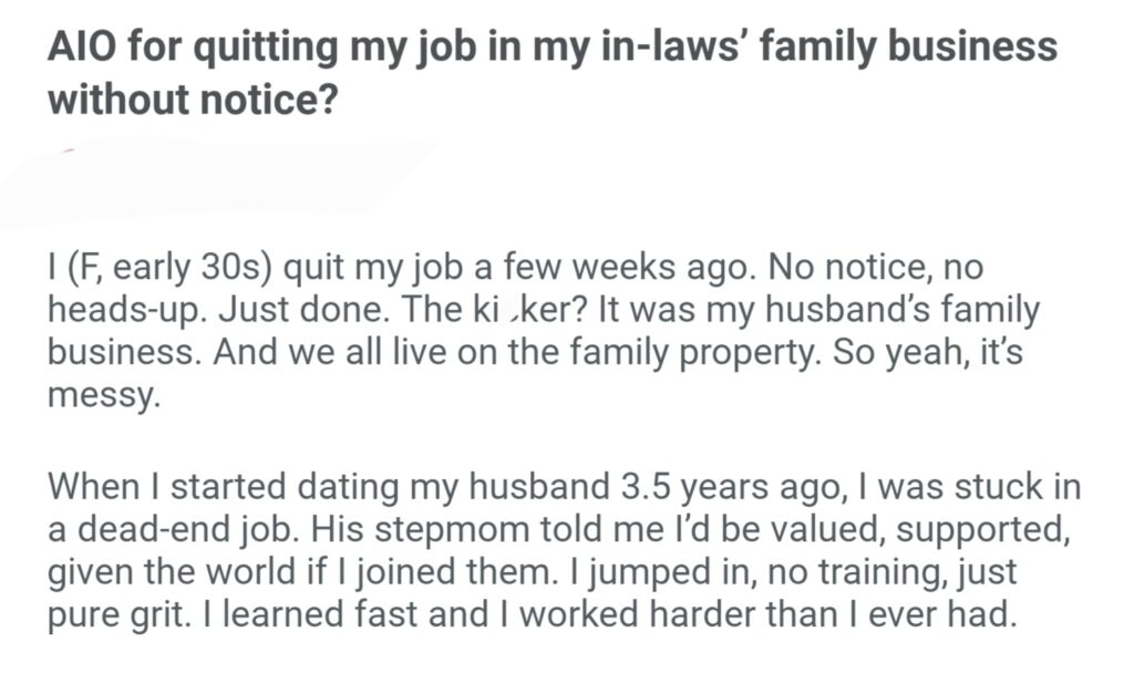 AIO For Quitting My Job In My Inlaws Family Business Without Notice