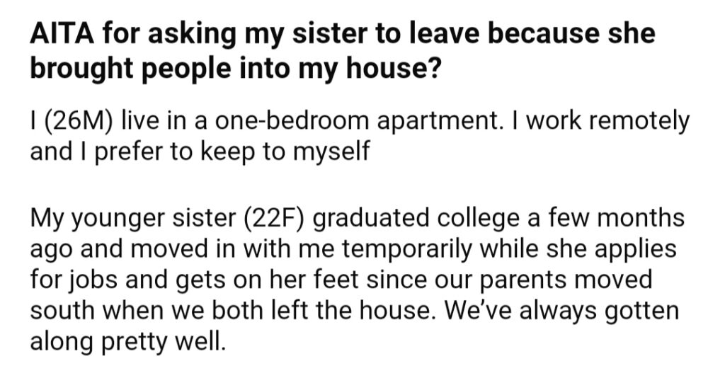 AITA For Asking My Sister To Leave Because She Brought People Into My House