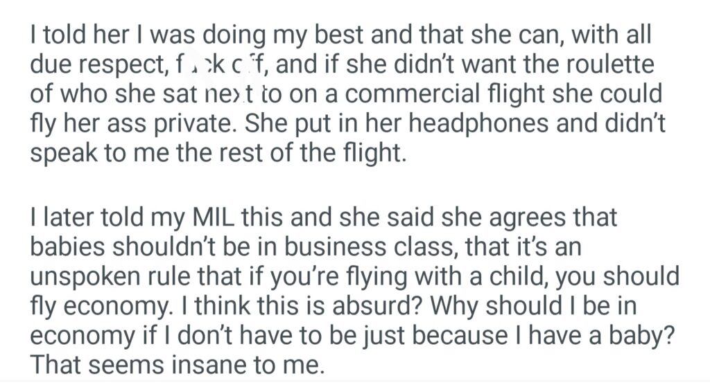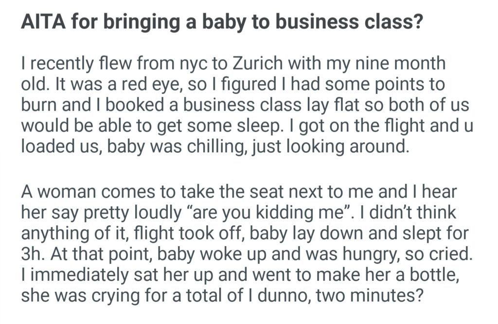 AITA For Bringing A Baby To Business Class