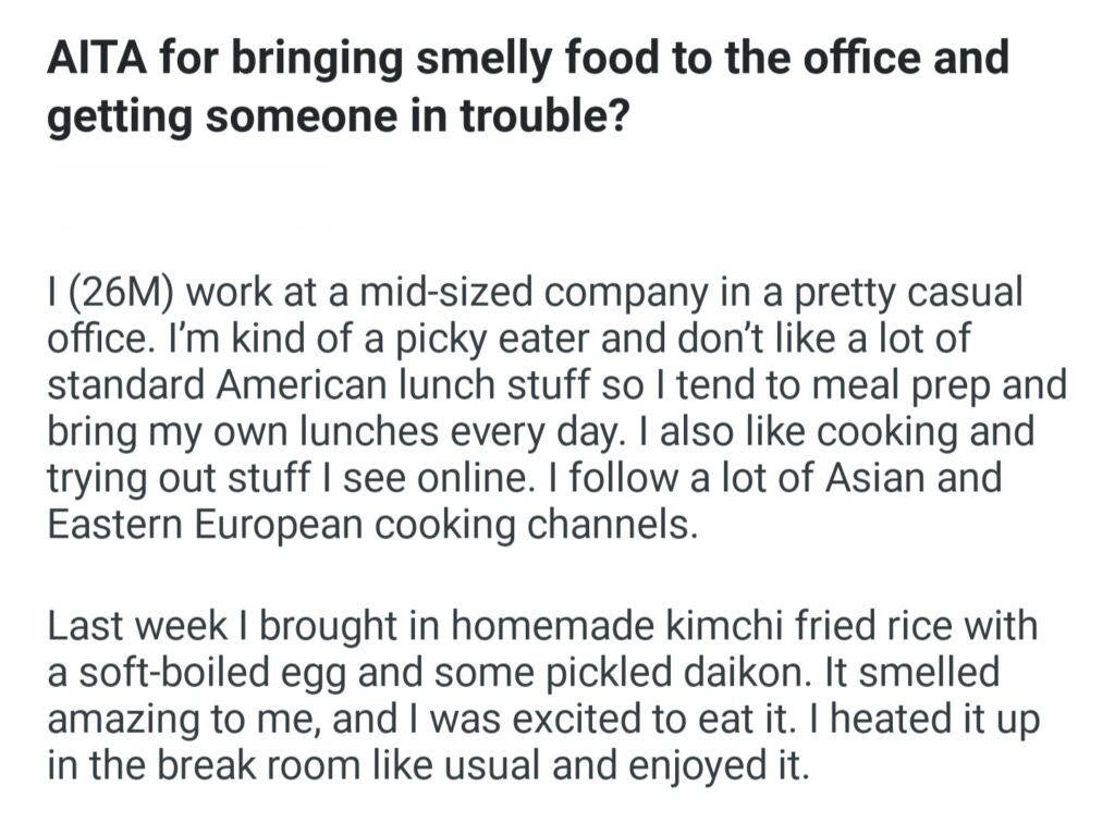 AiTA For Bringing Smelly Food To The Office