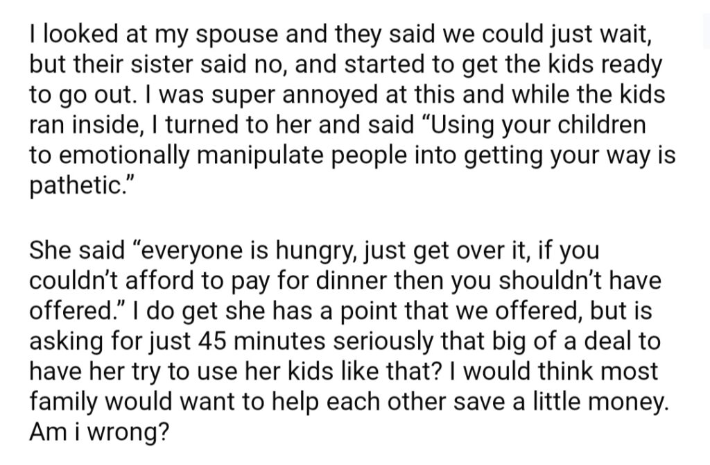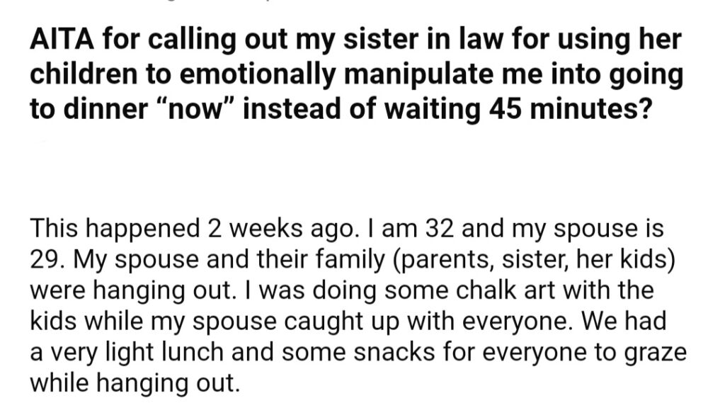 AITA For Calling My Sister In Law For Using Her Children Me Into Going To Dinner