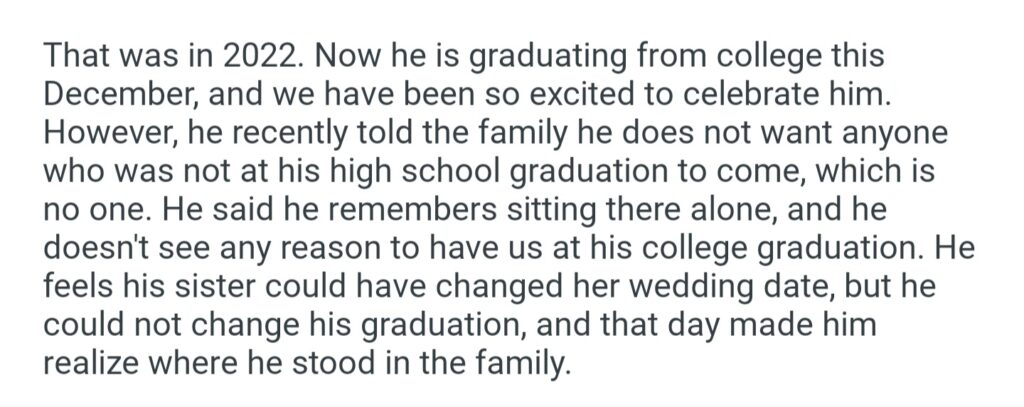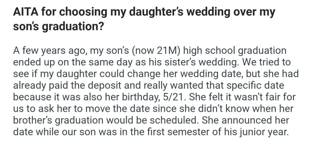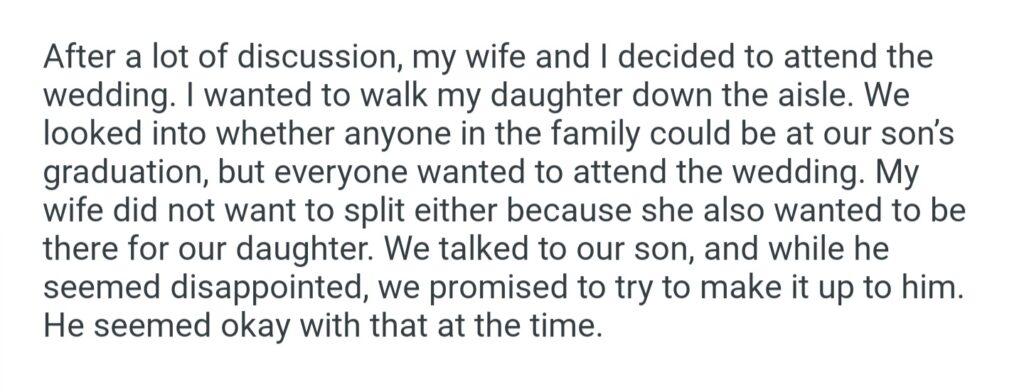 AITA For Choosing My Daughter’s Wedding Over My Son’s Graduation
