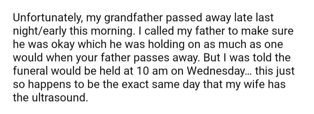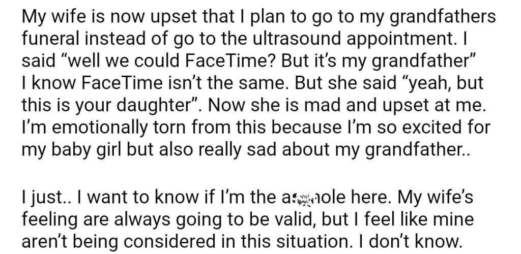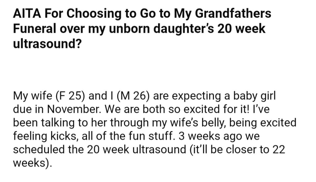AITA For Choosing To Go My Grandfathers Funeral Over My Unborn Daughter’s 20 week Ultrasound