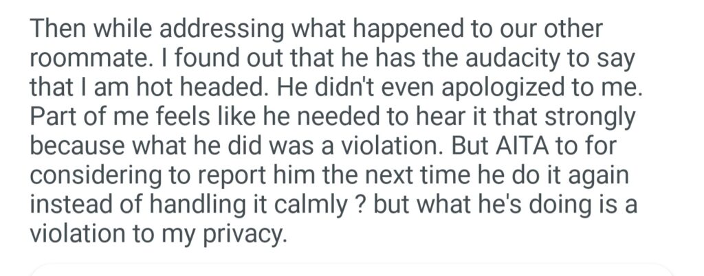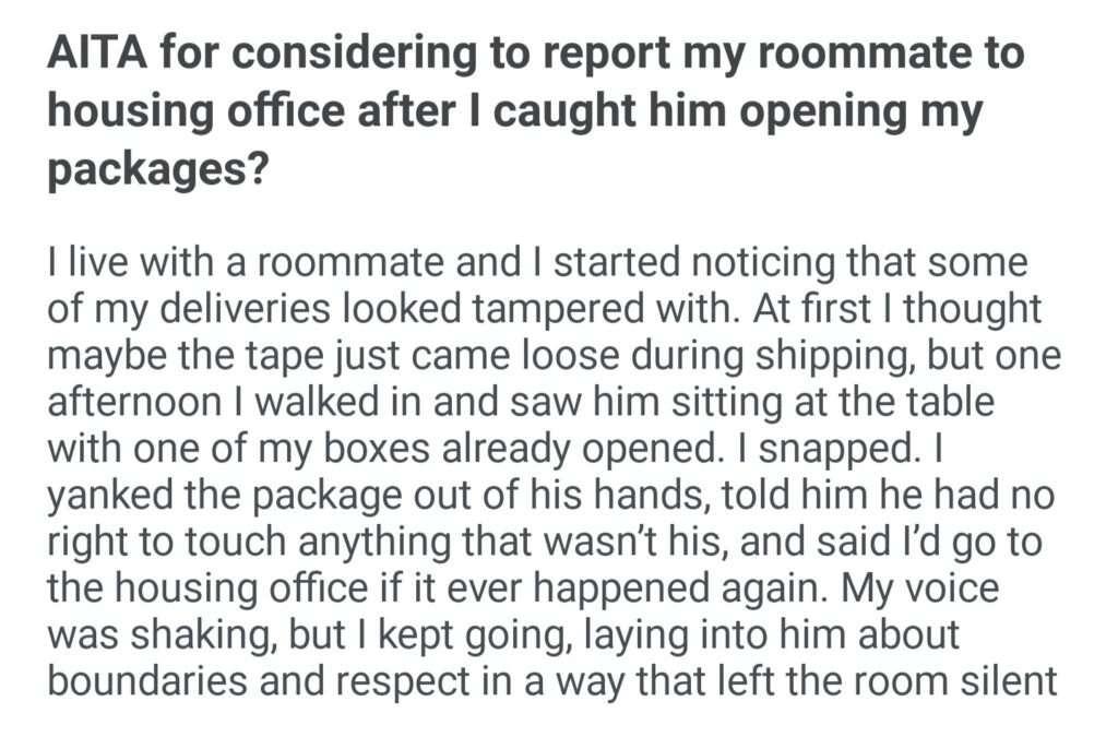 AITA For Considering To Report My Roommate To Housing Office After I Caught Him Opening My Package