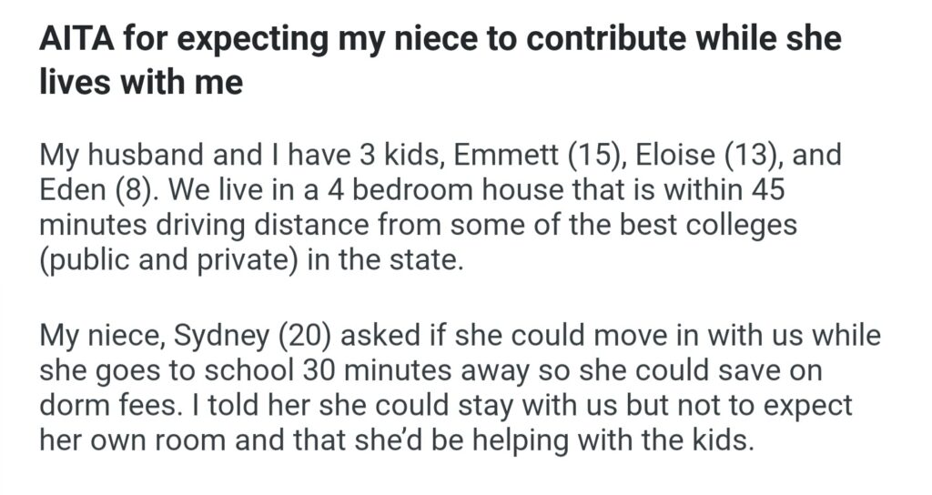 AITA For Expecting My Niece To Contribute While She Lives With Me