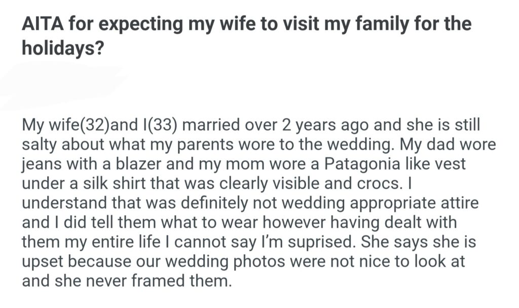 AITA For Expecting My Wife To Vist My Family For The Holidays