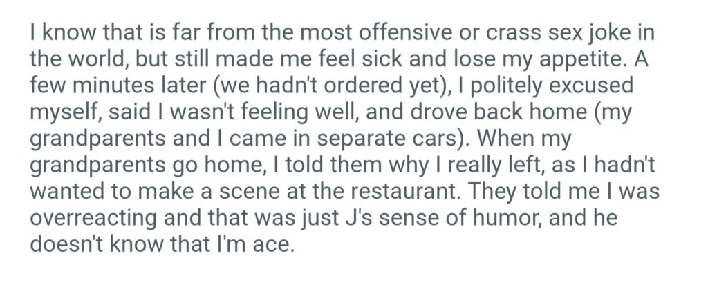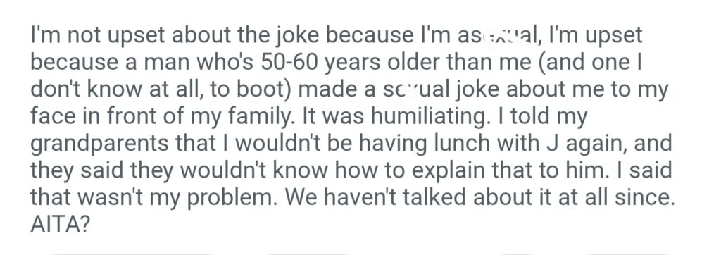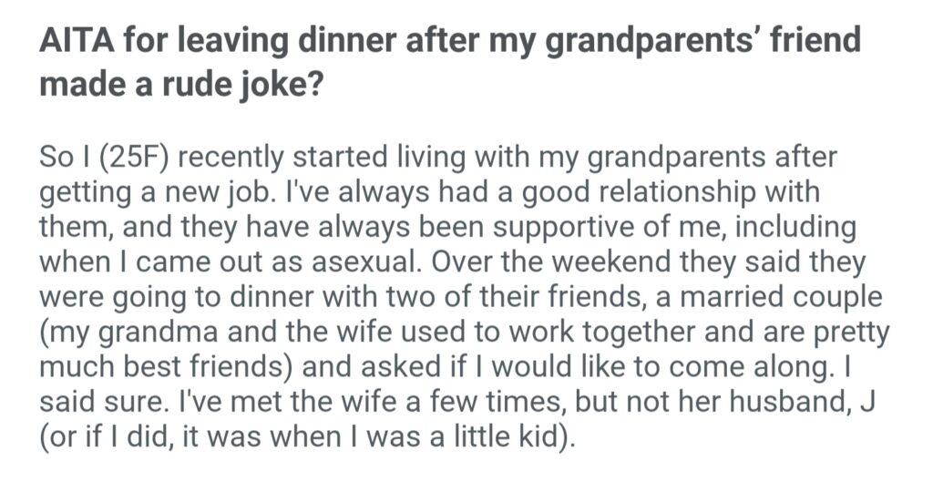 AITA For Leaving Dinner After My Grandparents Friend Made A Joke