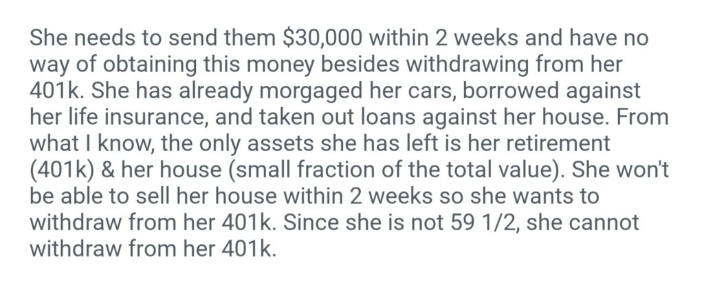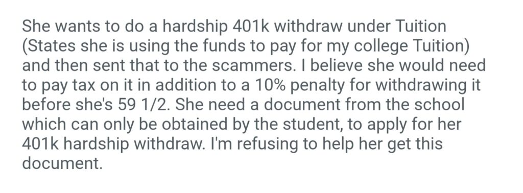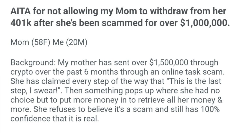 AITA For Not Allowing My MOM To Withdraw From Her 401k
