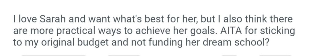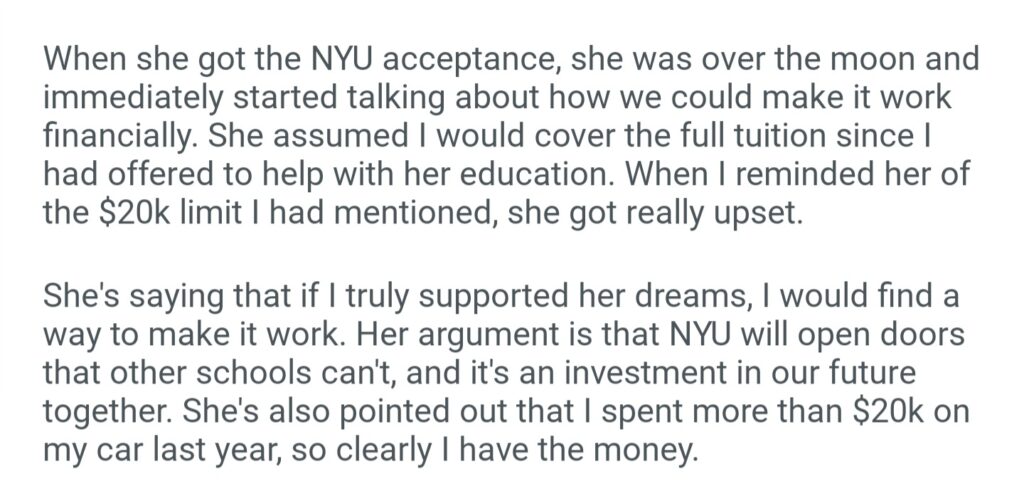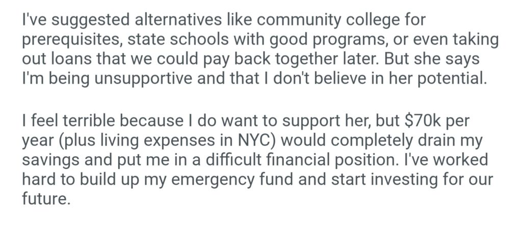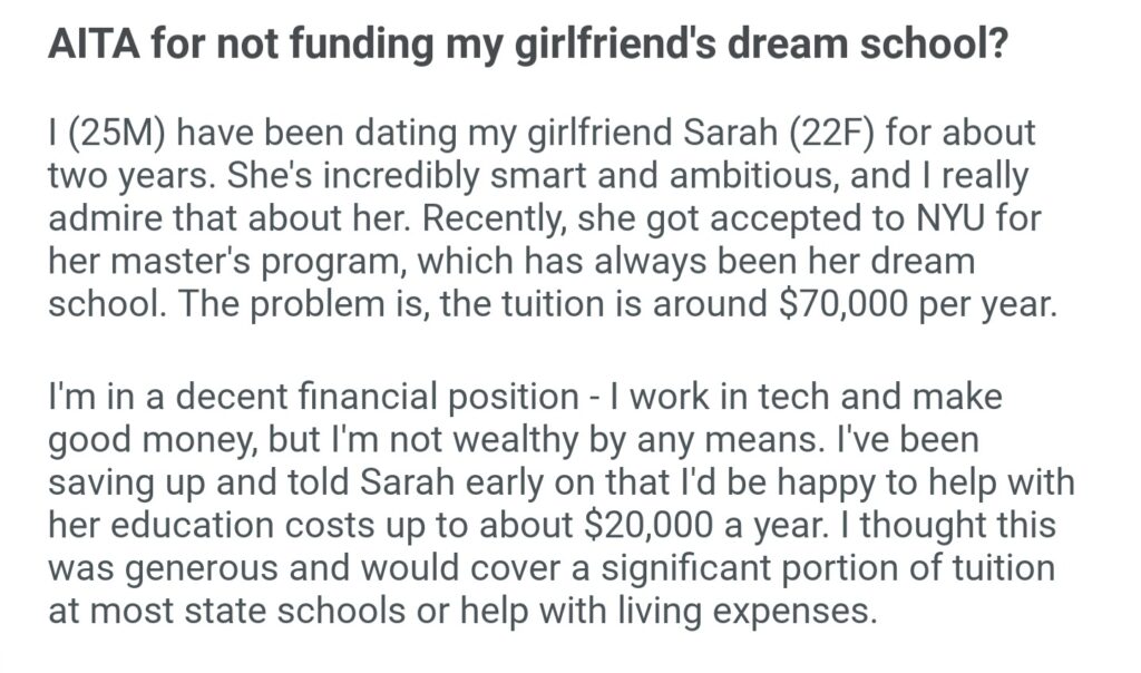 AITA For Not Funding My Girlfriend’s Dream School