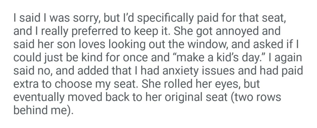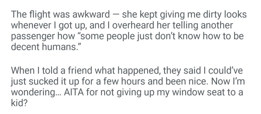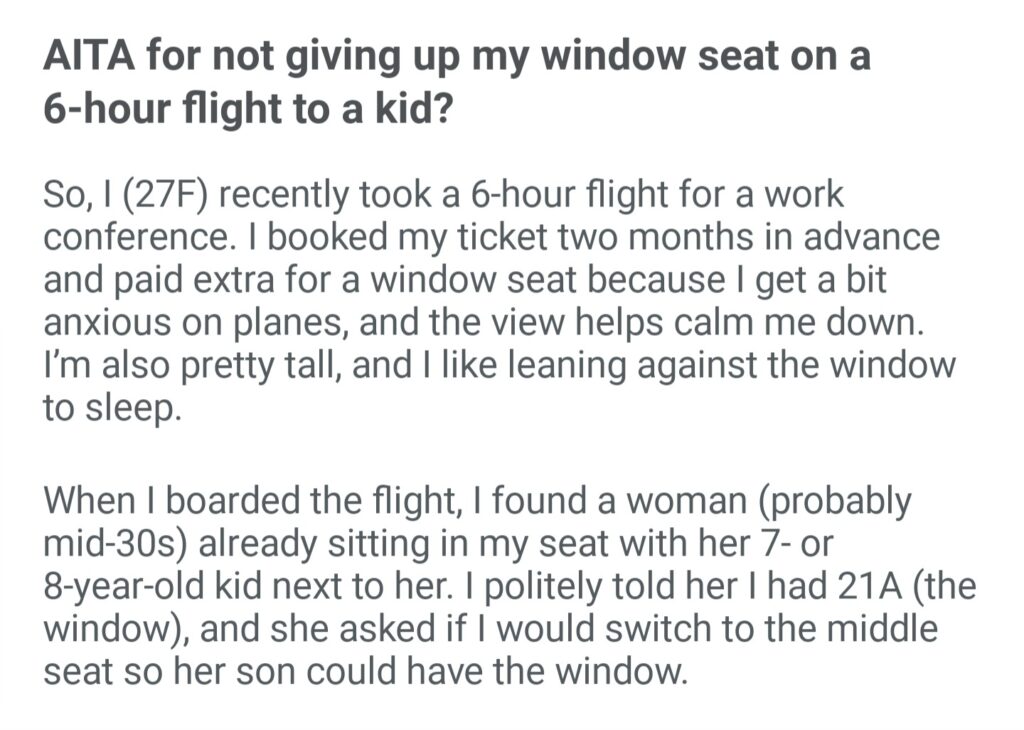 AITA For Not Giving Up My Window Seat On A 6 Hour Flight To A Kid