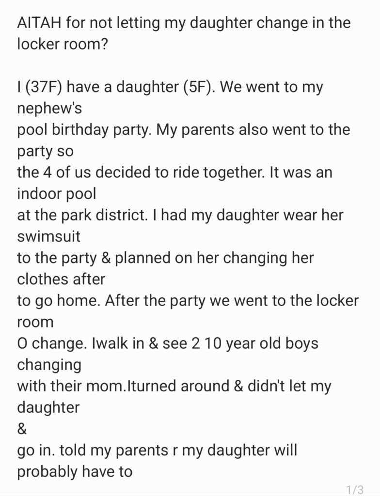 AiTA For Not Letting My Daighter Chnage In The Locker Room