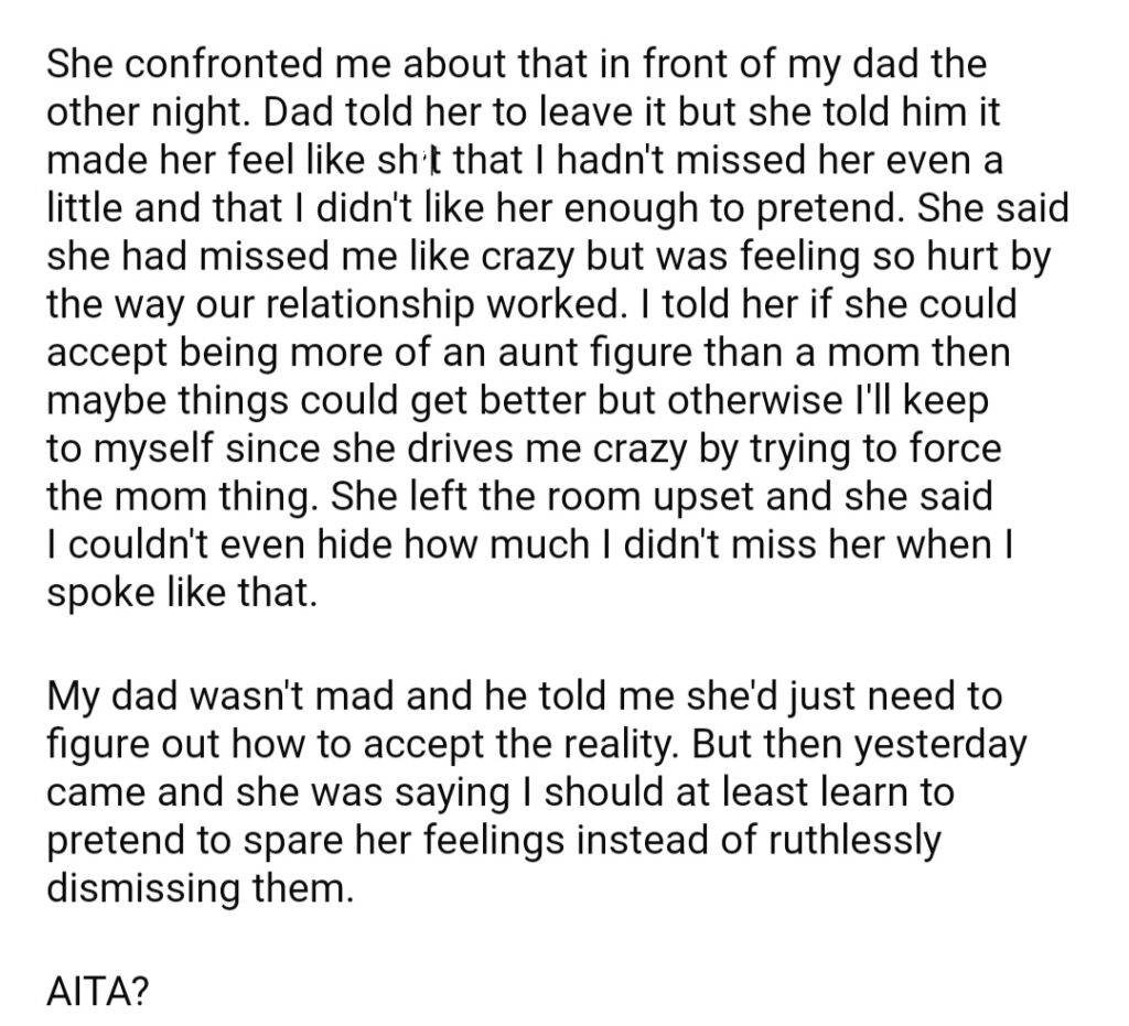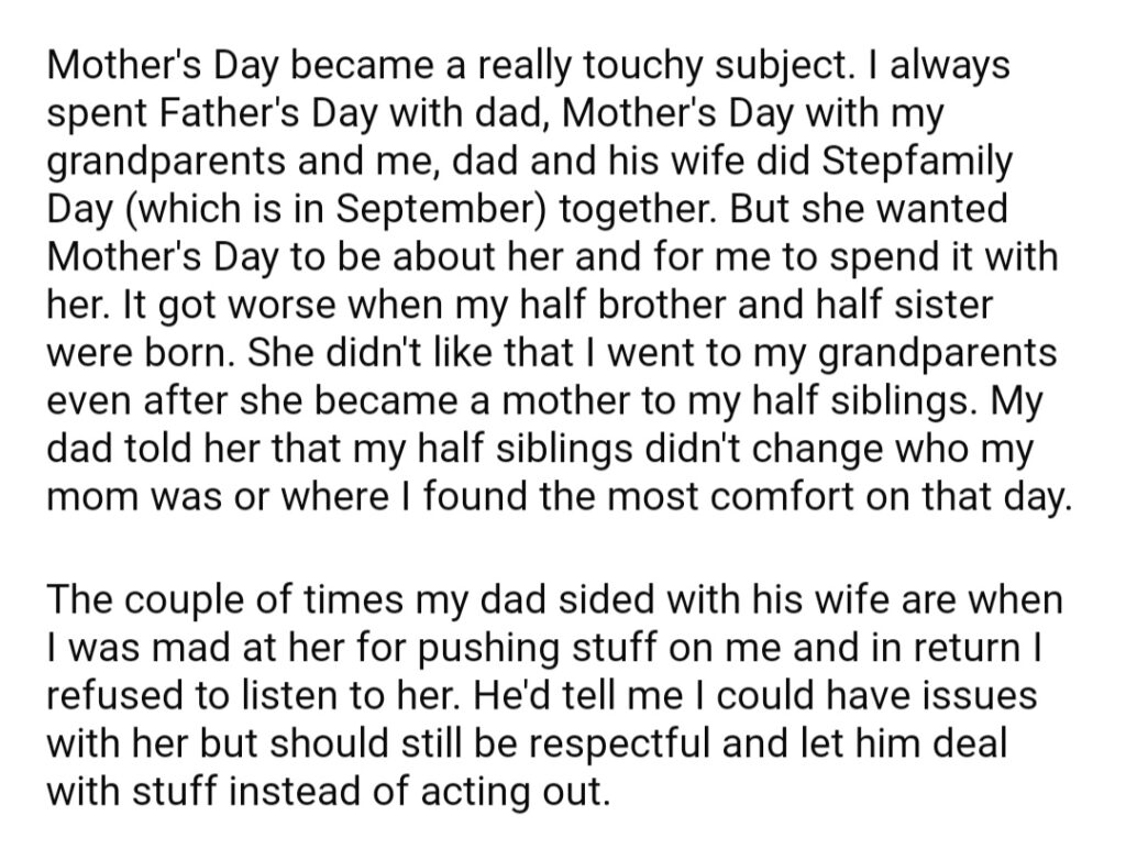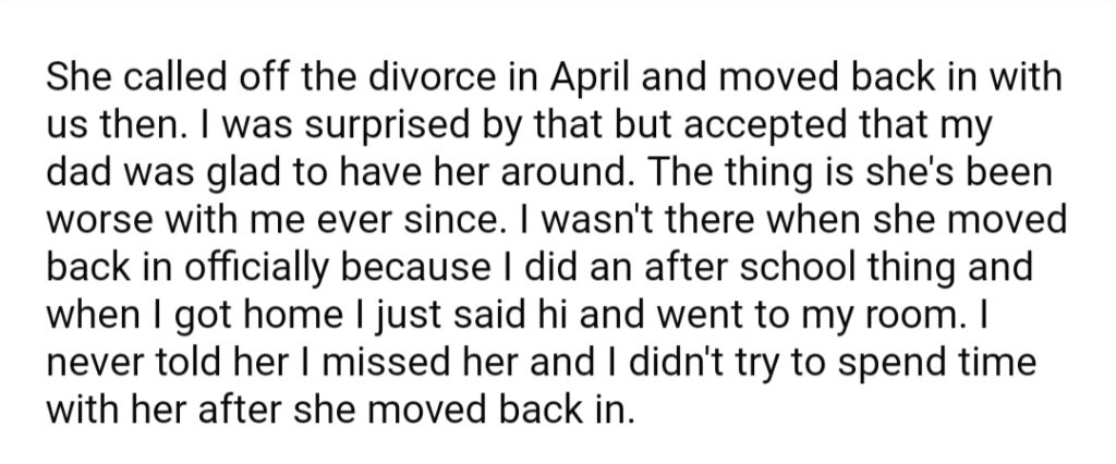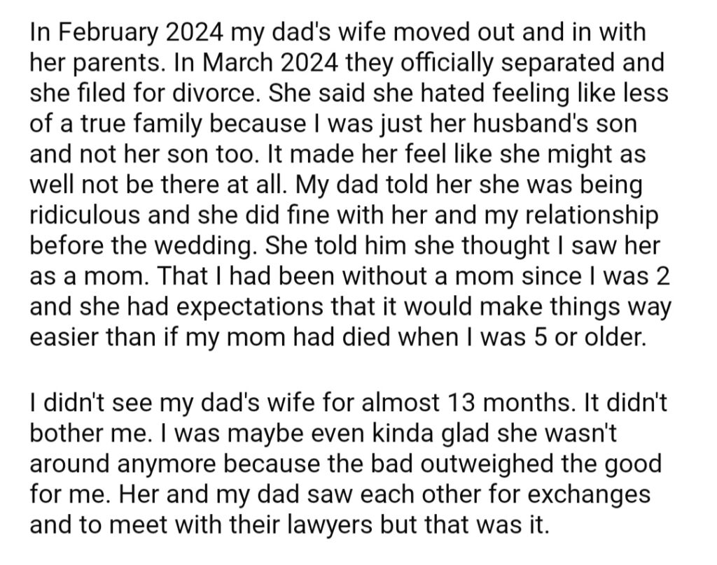 AITA For Not Missing My Dad’s Wife While They Were Separated And Not Pretending I Did Either