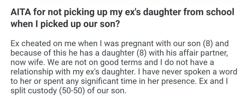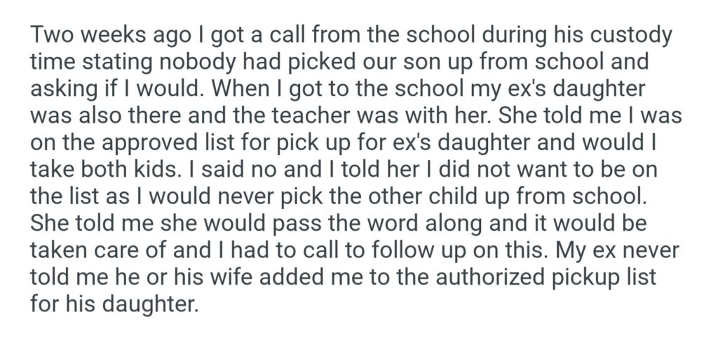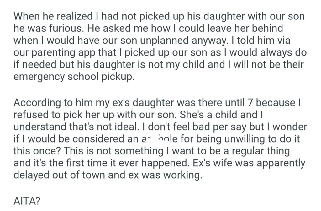 AITA For Not Picking Up My Ex’s Daughter From School When I Picked Up Our Son
