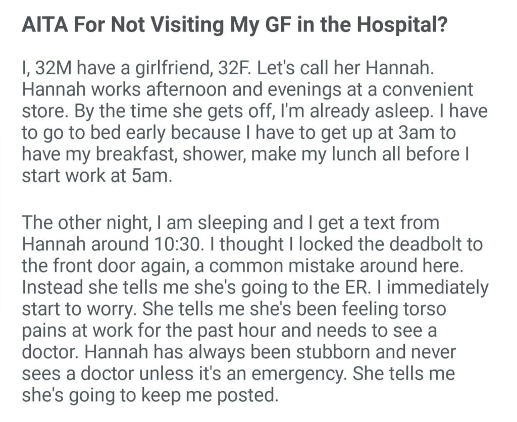 AITA For Not Visting My GF In The Hospital
