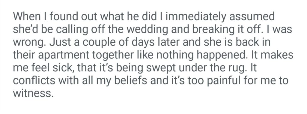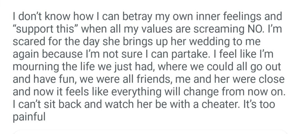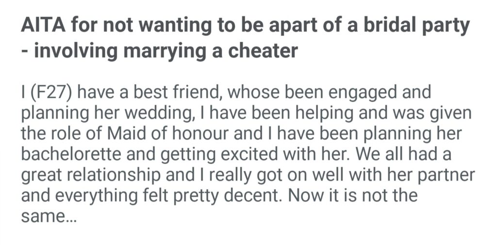 AiTA For Not Wanting To Be Apart Of A Bridal Party Involving Marrying A Cheater