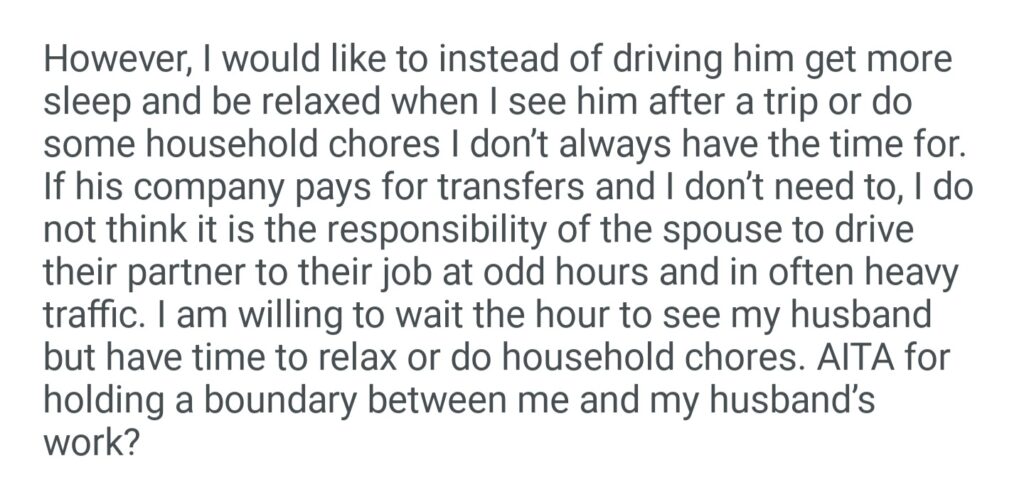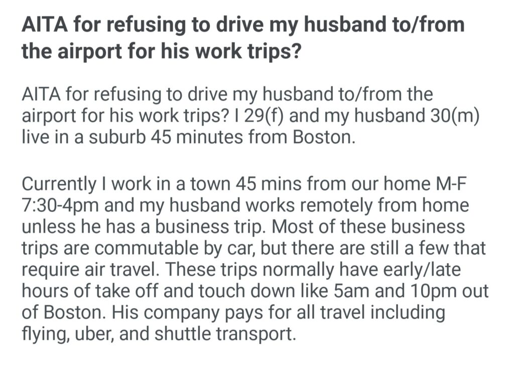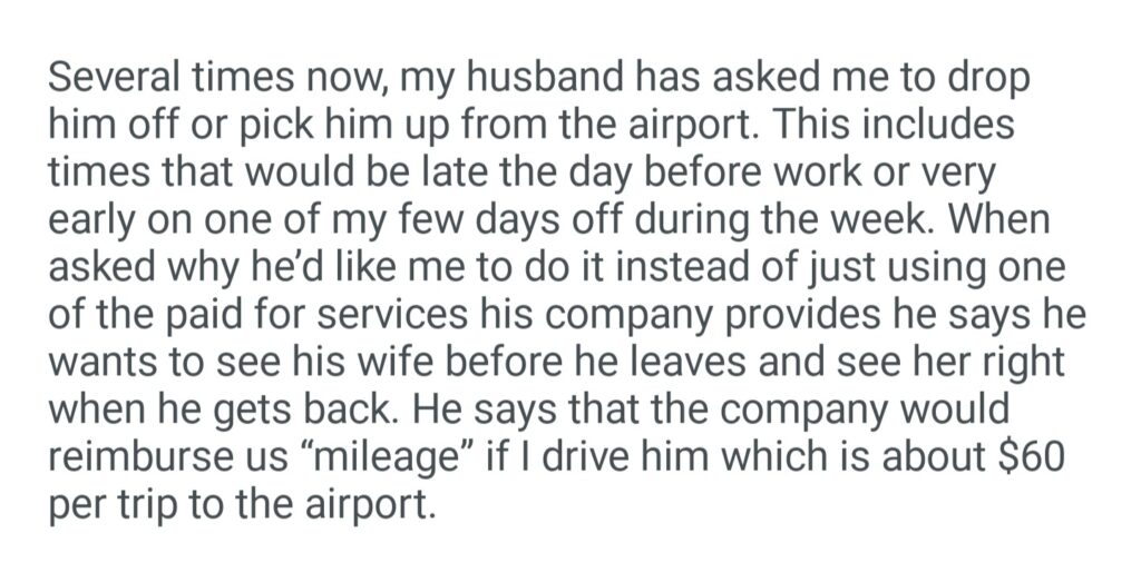 AiTA For Refusing To Drive My Husband To The Airport For His Work Trips