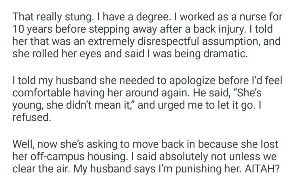 AITA For Refusing To Let My Stepdaughter Move Back In After She Called Me A Gold Digger