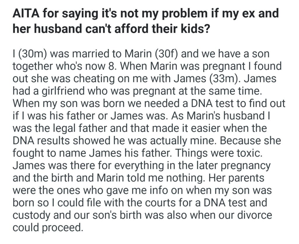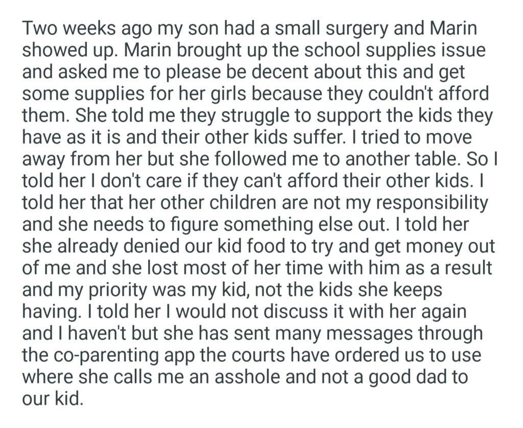 AITA For Saying It’s Not My Problem If My Ex And Her Husband Can”t Afford Their Kids