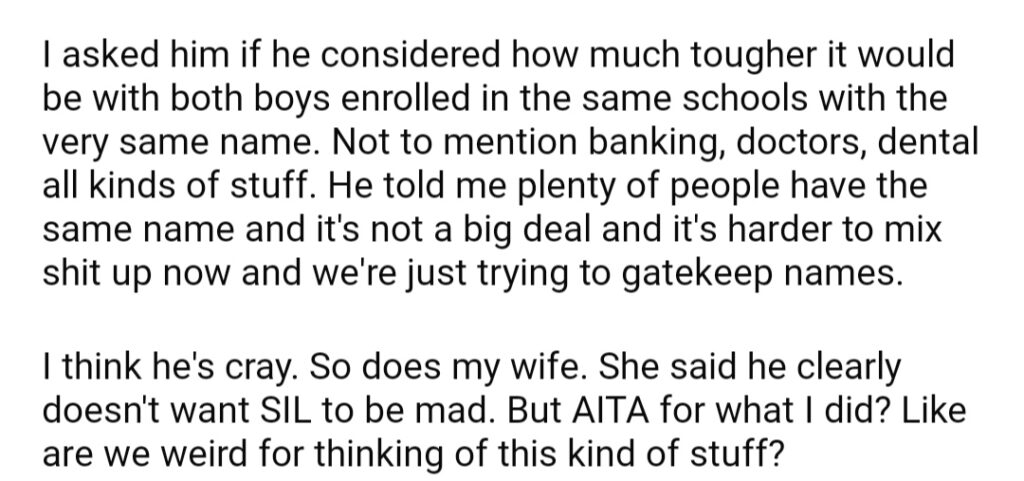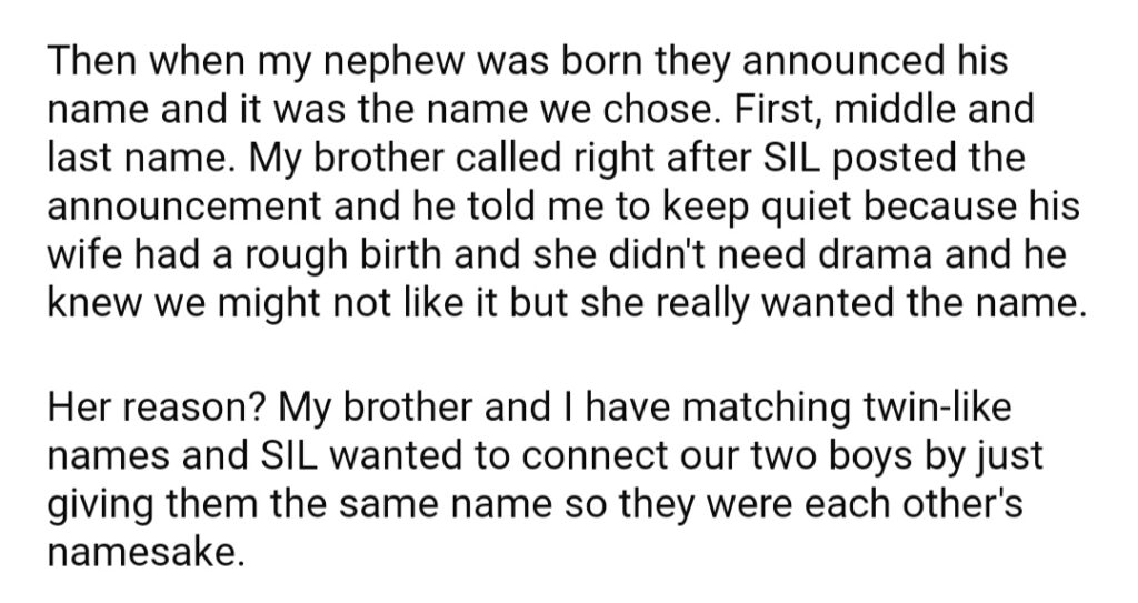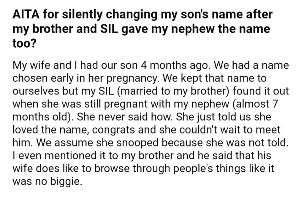 AITA For Silently Changing My Son’s Name After My Brother And SIL Gave My Nephew The Name Too