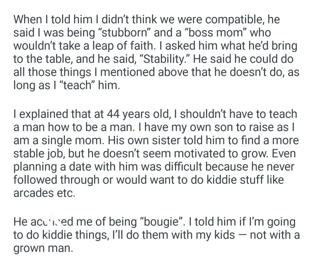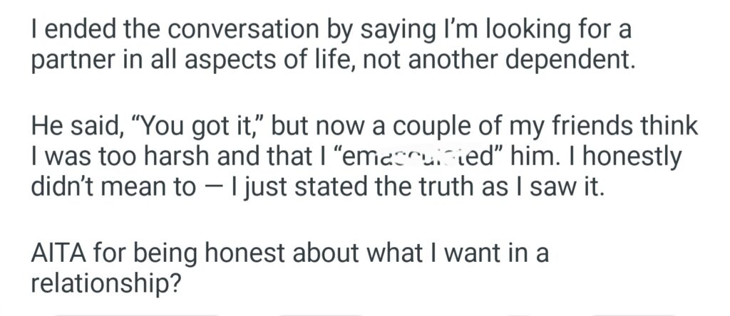AITA For Telling A Guy I Don’t Think We’re Compatible Because I Want A Partner Not Another Dependent