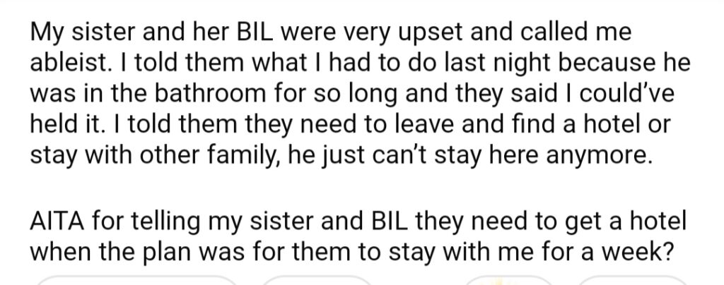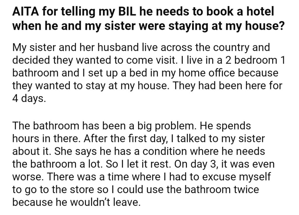 AITA For Telling My BIL he Needs To Book A Hotel When He And My Sister Were Staying At My House