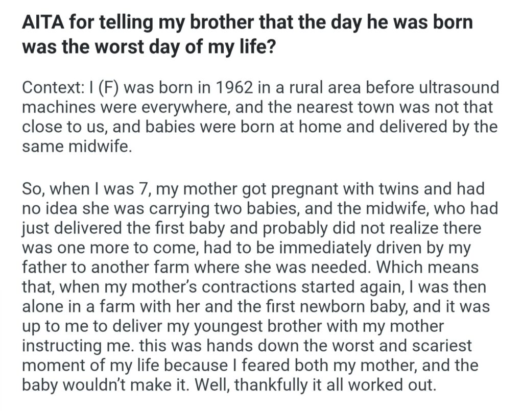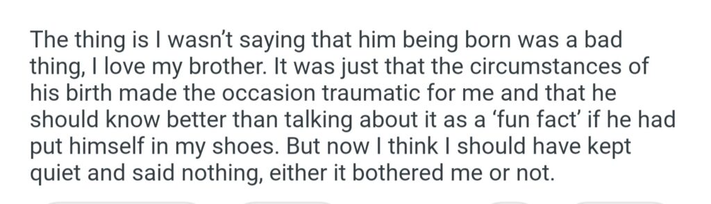 AITA For Telling My Brother That The Day He Has Born Was The Worst Day Of My Life