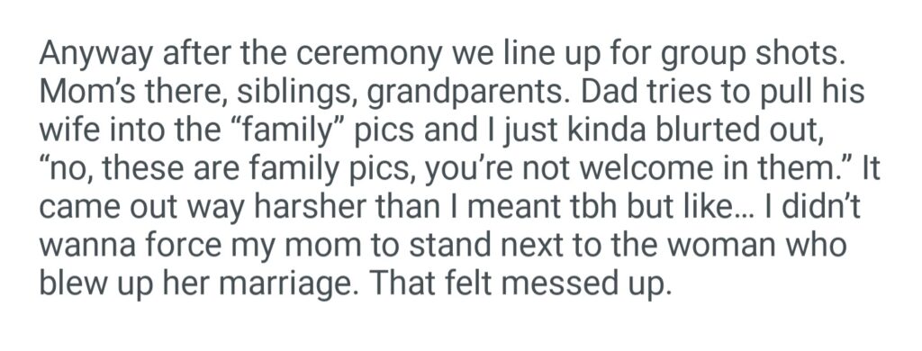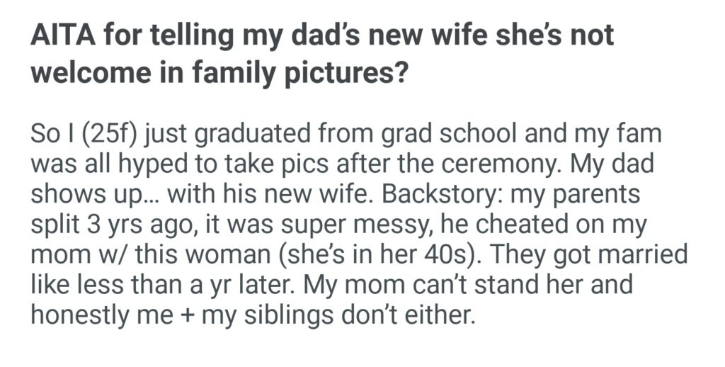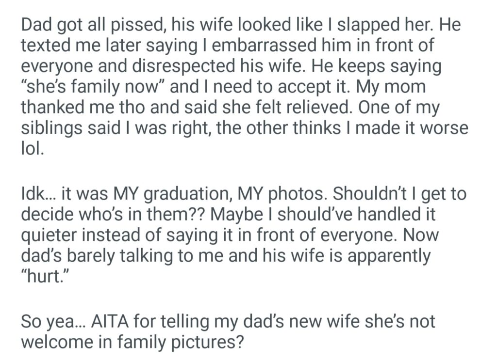 AITA For Telling My Dad’s New Wife She’s Not Welcome In Family Picture