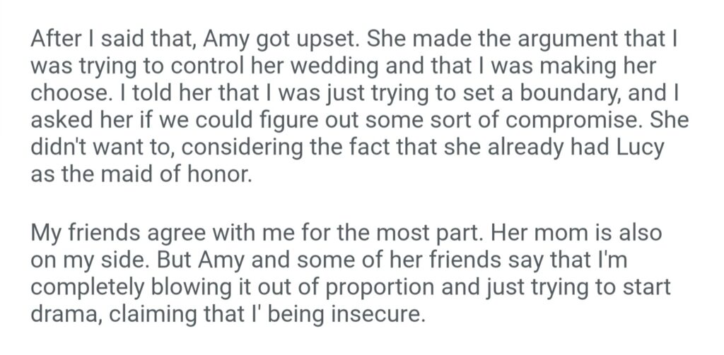 AITA For Telling My Fiance That I’m Uncomfortable With Who She Chose As Her Maid Of Honor