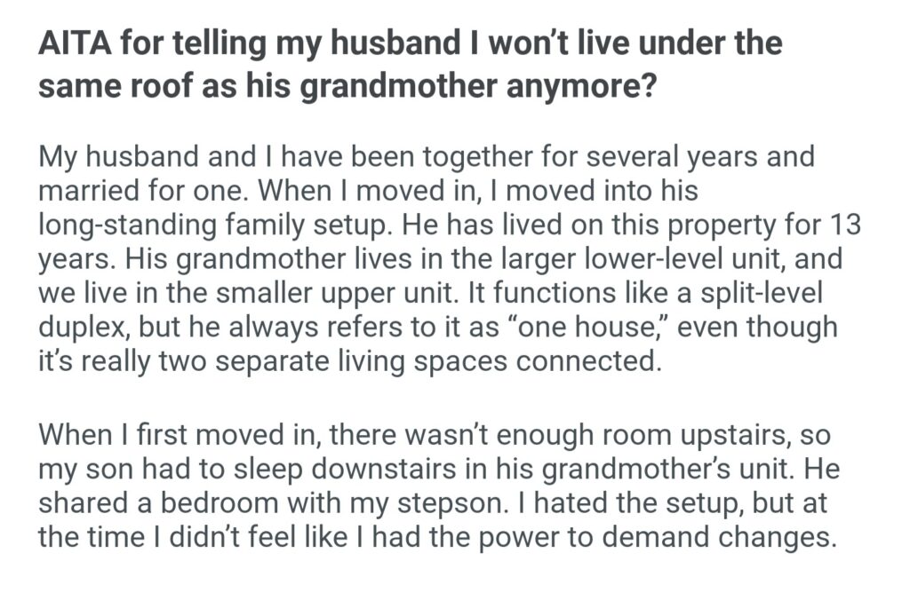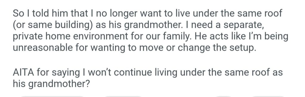 AITA For Telling My Husband I Won’t Live Under The Same Roof As Hus Grandmother Anymore