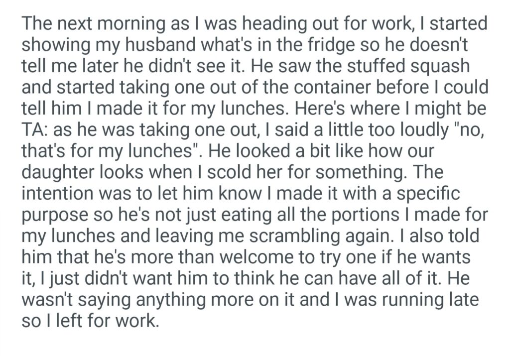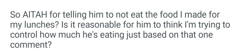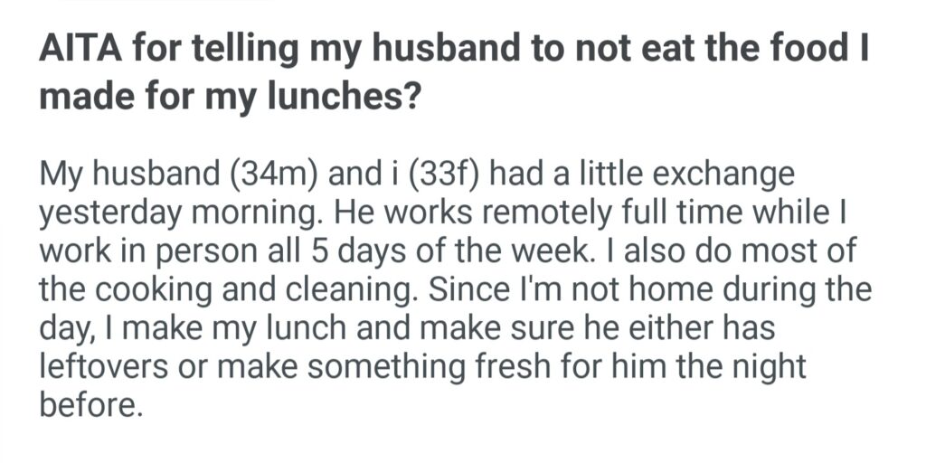AITA For Telling My Husband To Not Eat The Food I Made For My Lunches