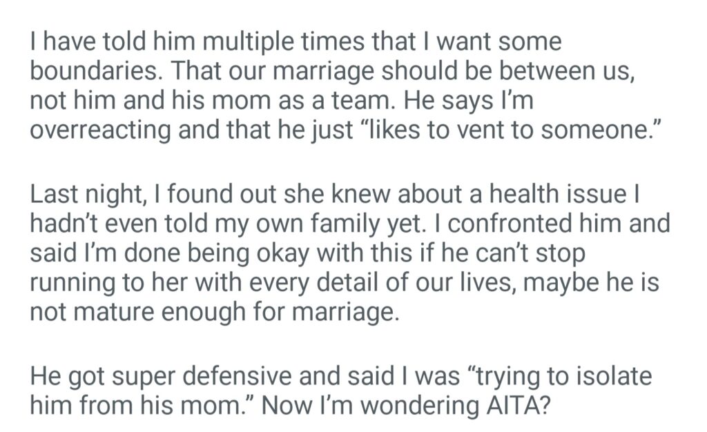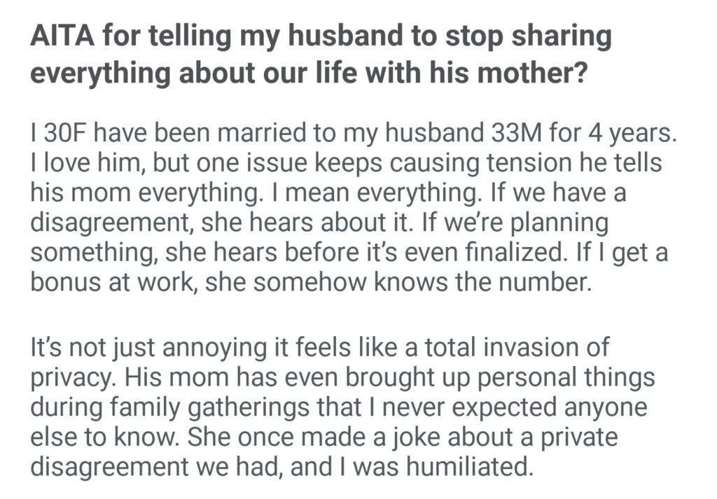 AITA For Telling My Husband To Stop Sharing Everything About Our Life With His Mother