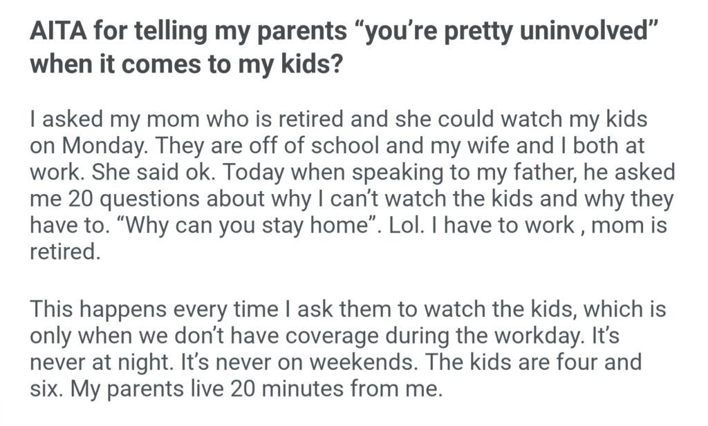 AITA For Telling My Parents You Pretty Uninvolved When It Comes To My Kids
