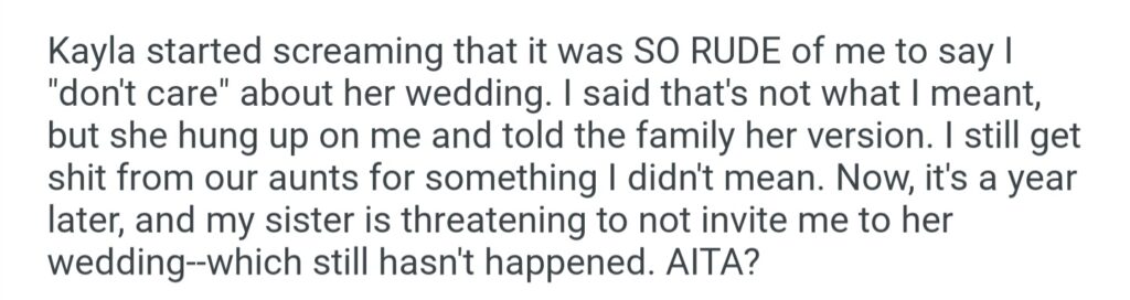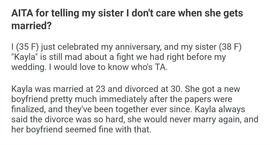 AITA For Telling My Sister I Don’t Care When She Gets Married
