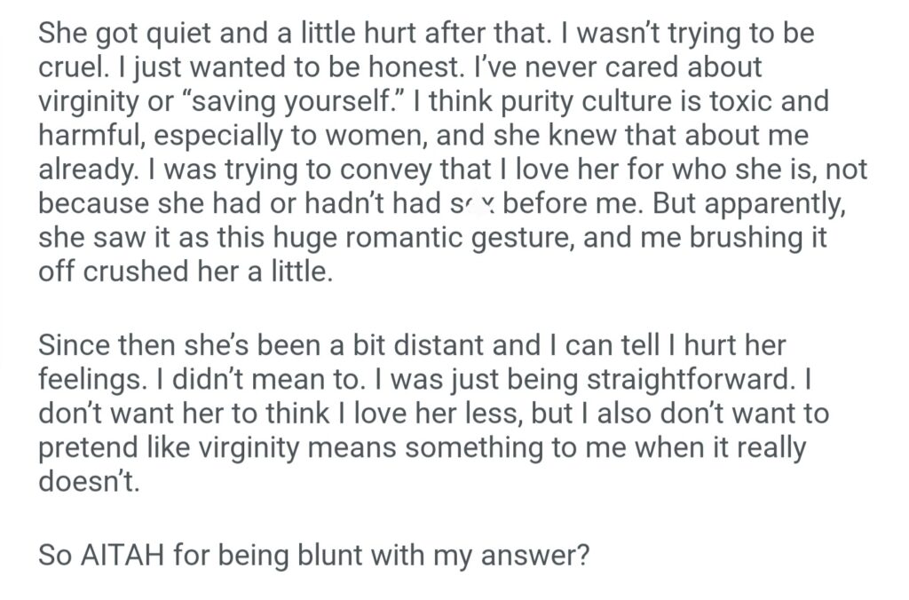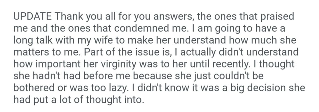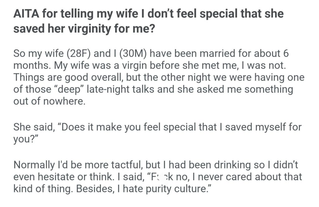 AiTA For Telling My Wife I Dont Feel Special That She Saved Her Virginity For Me