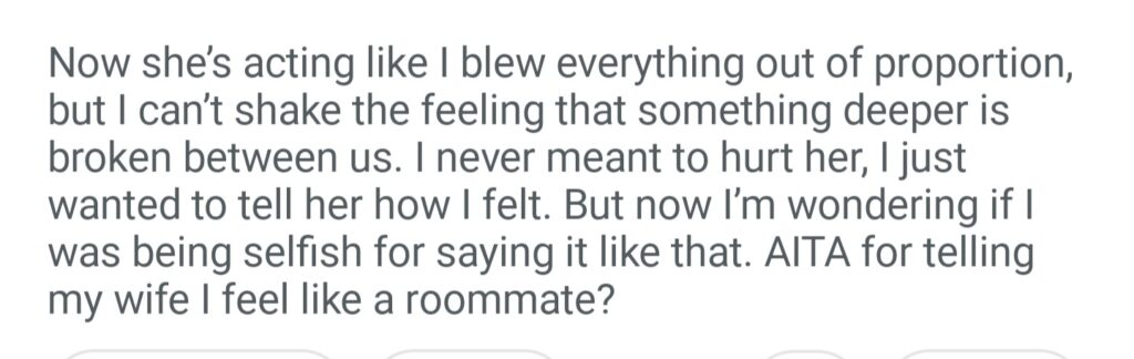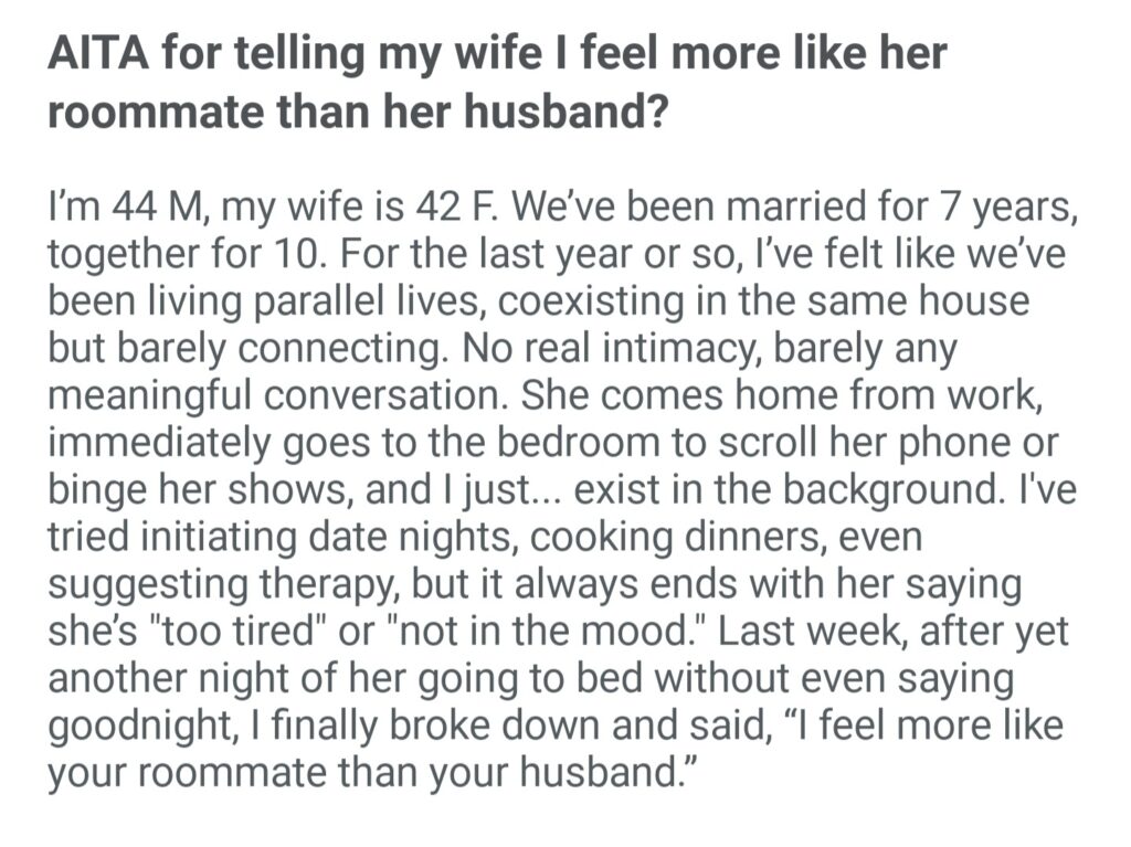 AITA For Telling My Wife I Feel More Like Her Roommate Than Her Husband