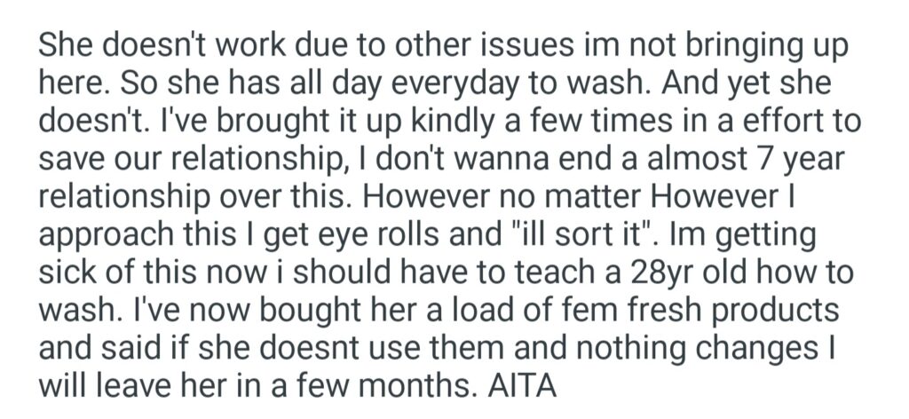 AITA My Gf Has Hygiene Issues