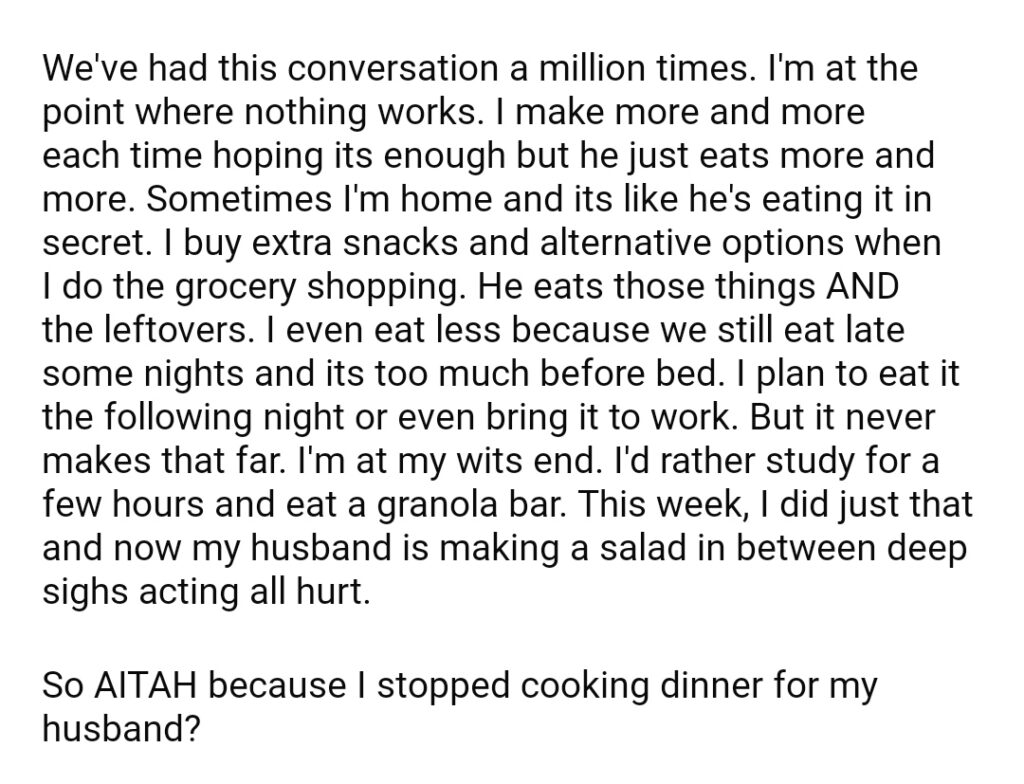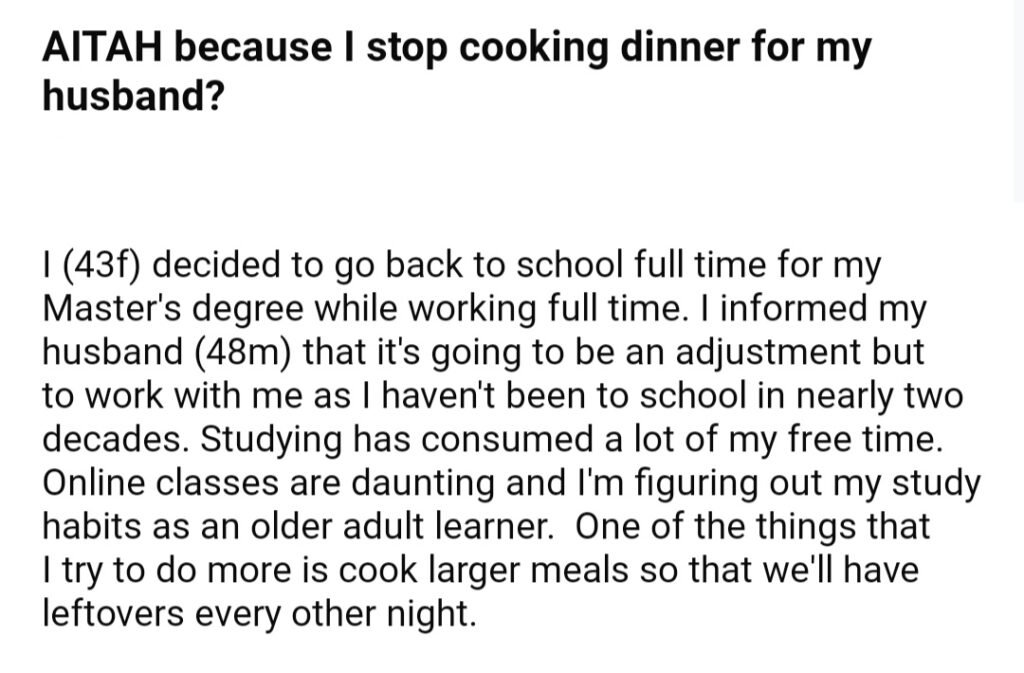 AITAH Because I Stop Cooking Dinner For My Husband