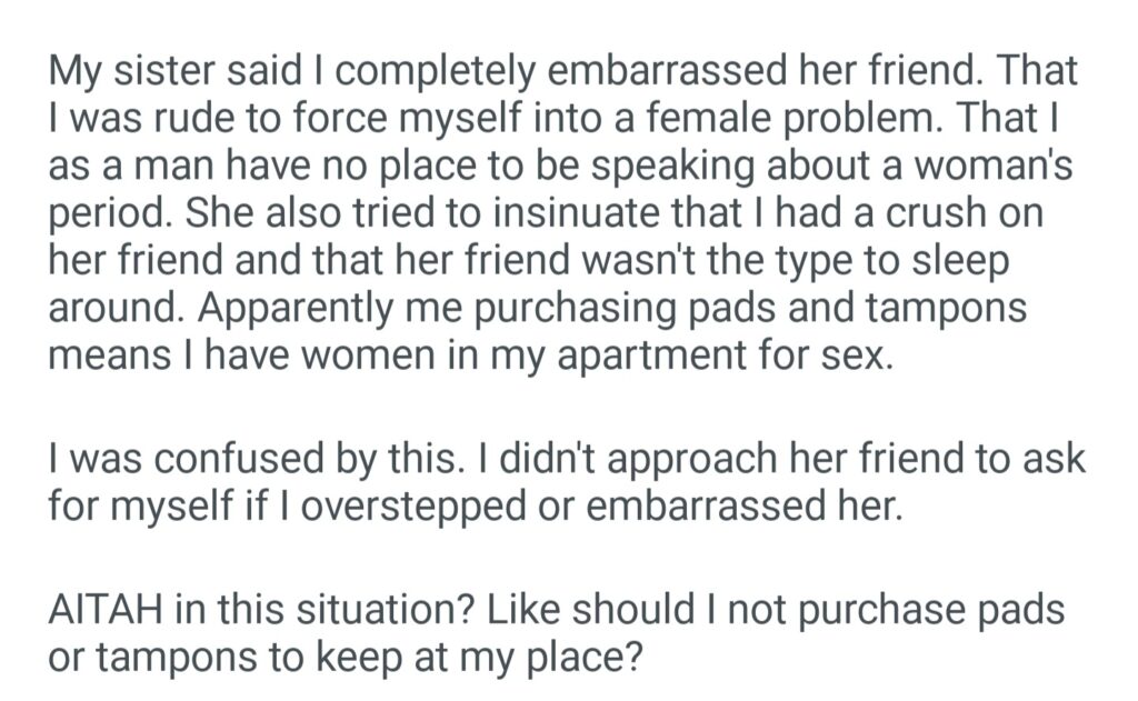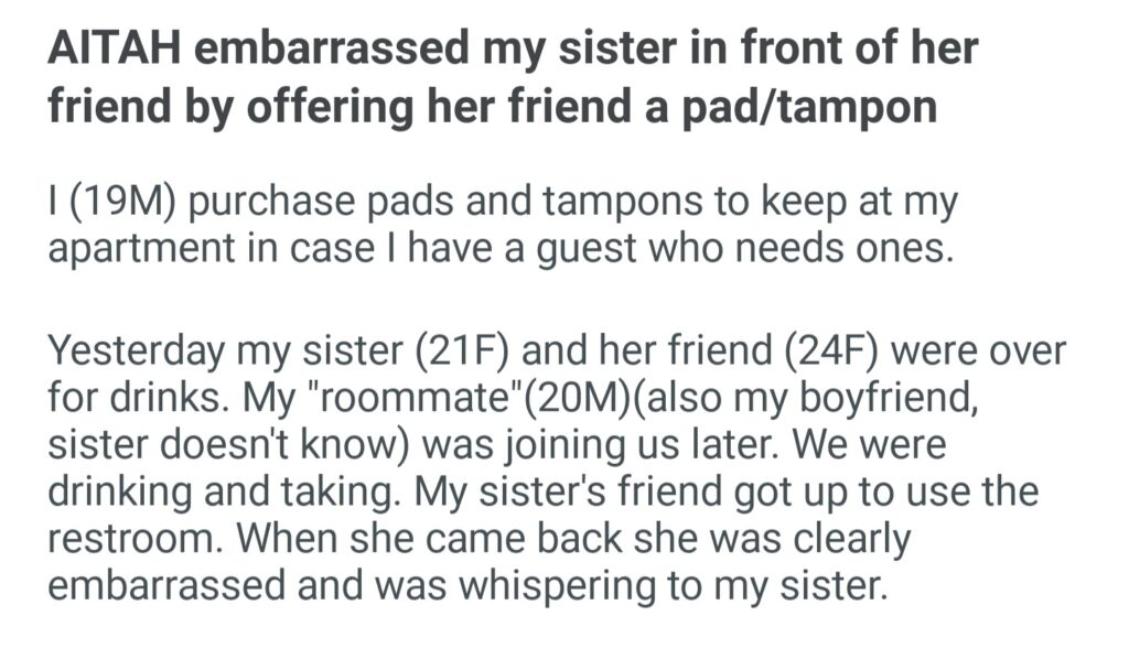 AITAH Embarrassed My Sister In Front Of Her Friend By Offering Her Friend A Pad