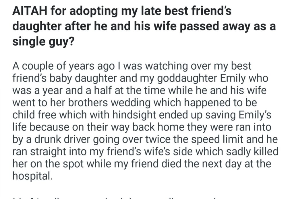 AITAH For Adopting My Late Best Friend’s Daughter After He And His Wife Passed Away As A Single Guy