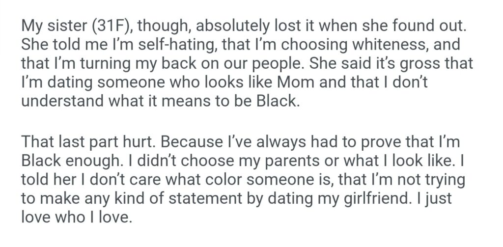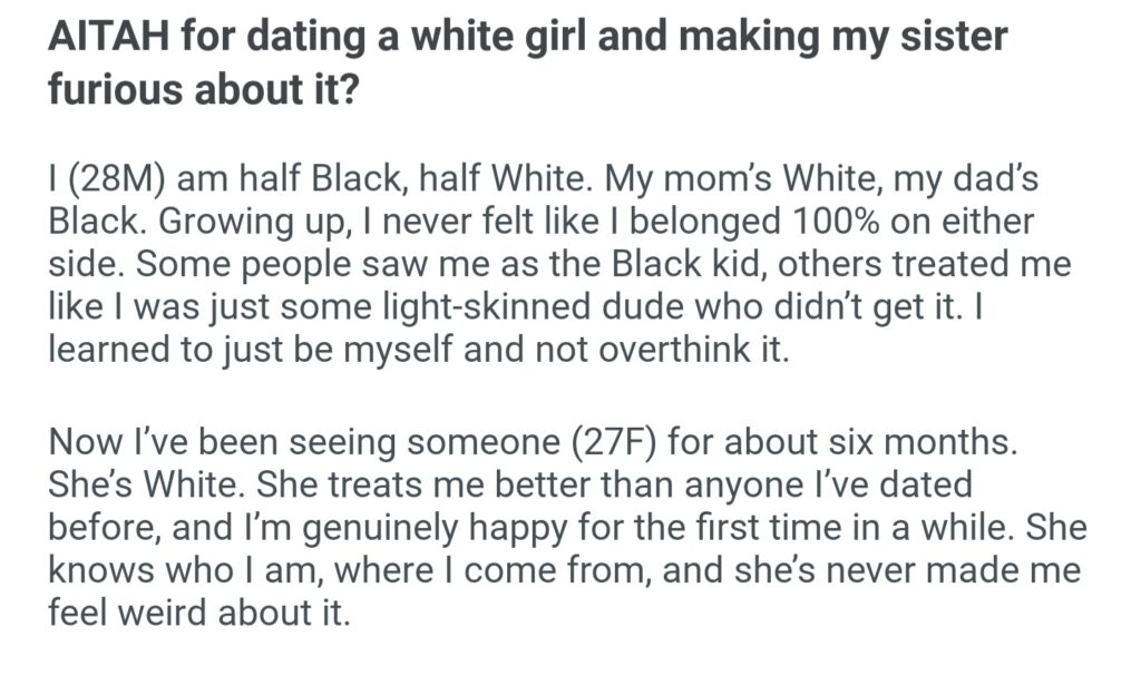 AITAH For Dating A White Girl And Making My Sister Furious About It