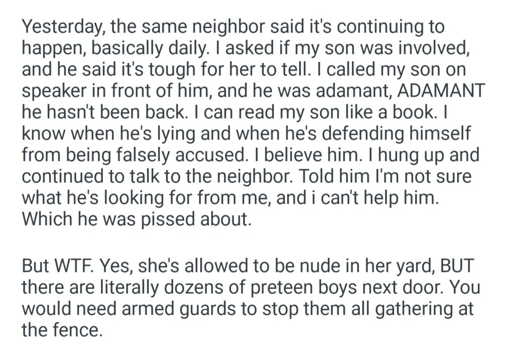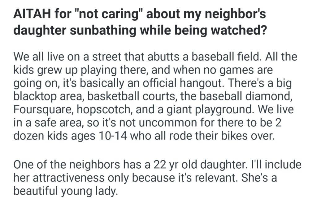 AITAH For Not Caring About My Neighbor”s Daughter Sunbathing While Being Watched