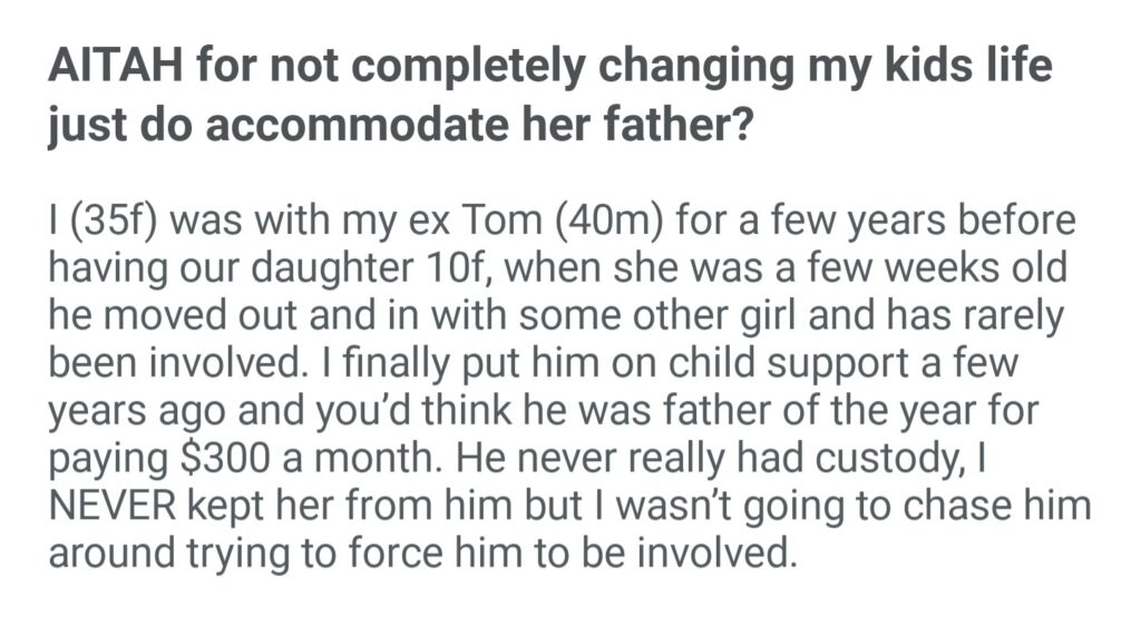 AITAH For Not Completly Changing My Kids Life Just Do Accommodate Her Father