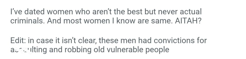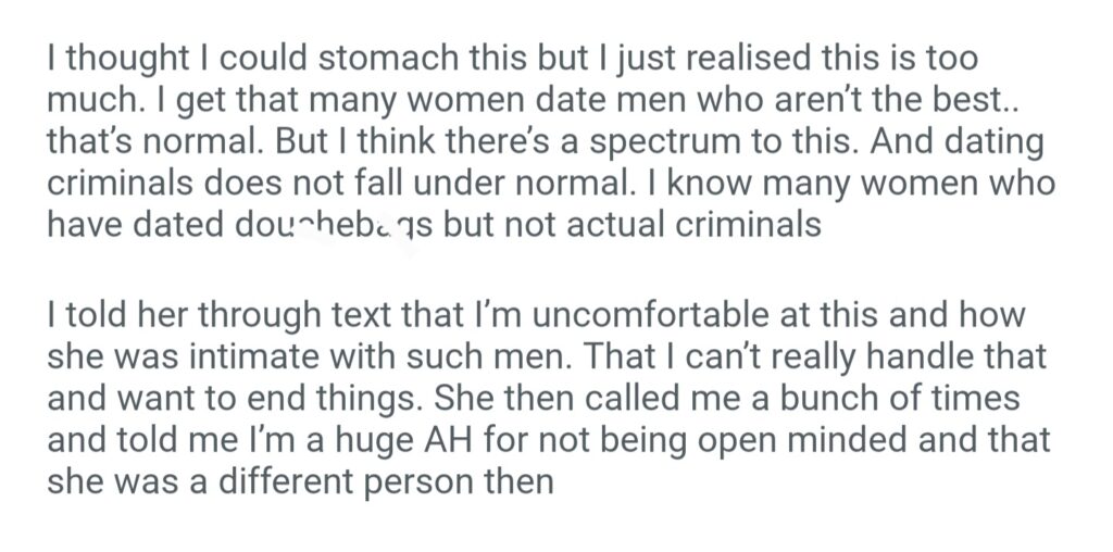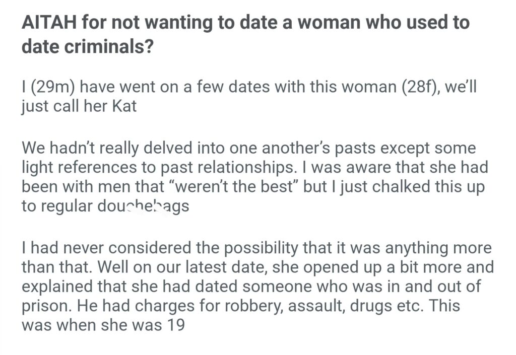 AiTAH For Not Wanting To Date A Woman Who Used To Date Criminals