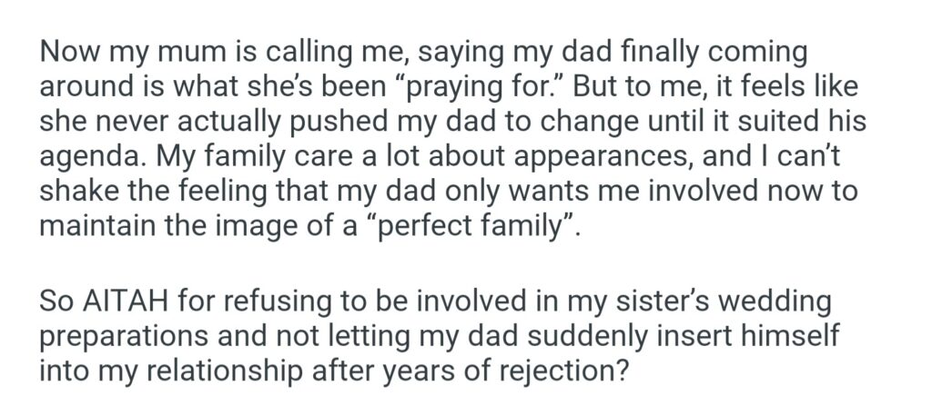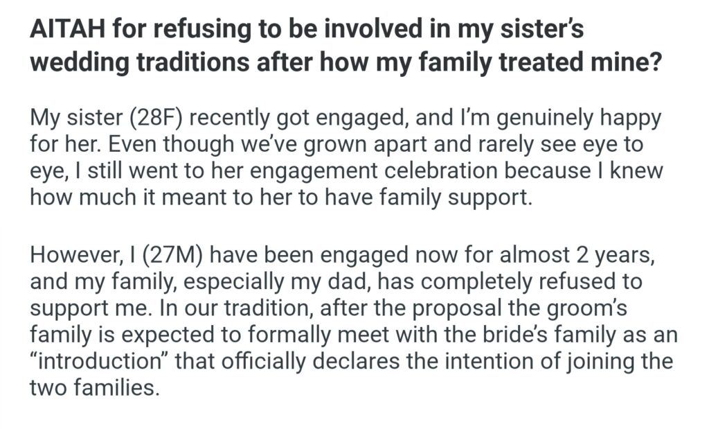 AITAH For Refusing To Be Involved In My Sister’s Wedding Traditions After How My Family Treated Mine
