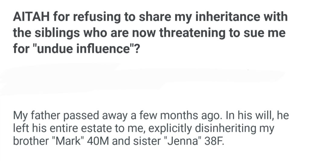AITAH For Refusing To Share My Inheritance With The Siblings