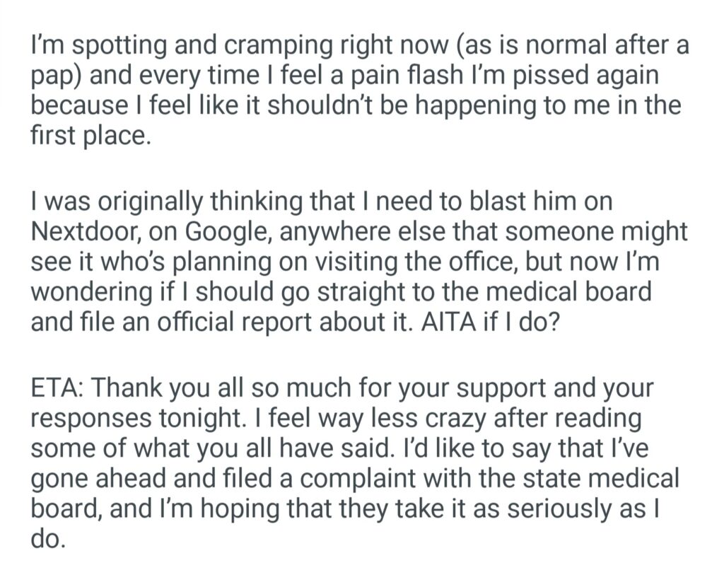 AiTAH For Reporting My to The Medical Boaed After What Happened To Me Today
