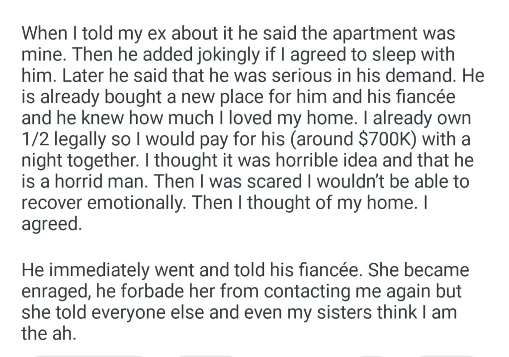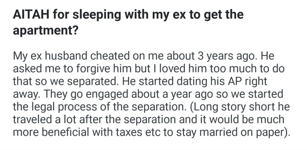 AITAH For Sleeping With My Ex To Get The Apartment